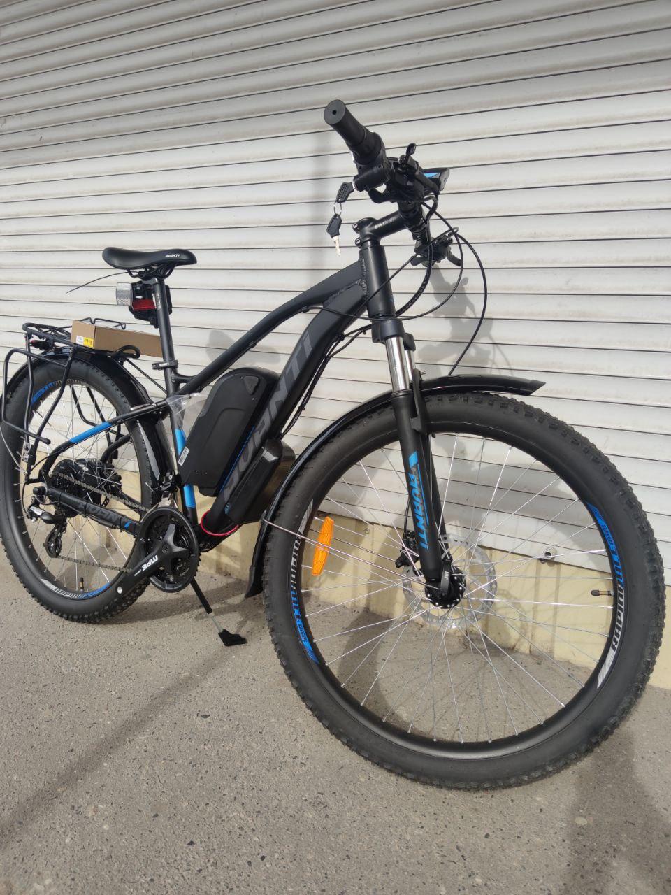 Велосипед собран на базе "Avanti Boost 27.5" на алюмінієвій рамі 18(L), механіка Shimano, встановлені гідравлічні гальма дискового типу, велосипед дуже міцний сплав алюмінію 7005 обода посилені (пістоновані) і високо прохідний завдяки покришкам на 3 дюйми. На велосипед встановлений комплект фірми mxus (один із найкращих на ринку) редукторний двигун на 500 W 48v контролер фірми Huawei на 23а, і фабрична батарея на 13ah 48v li-ion Panasonic, зарядний пристрій 2 А із системою охолодження.